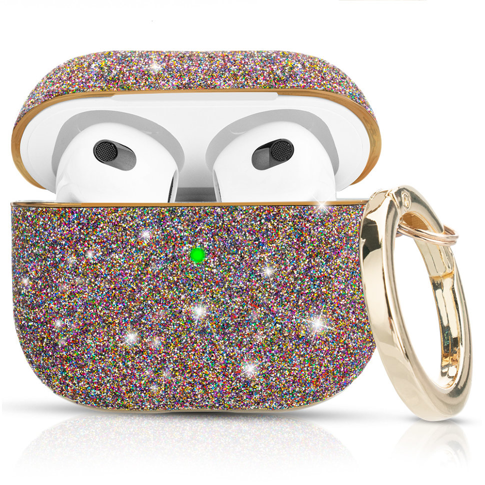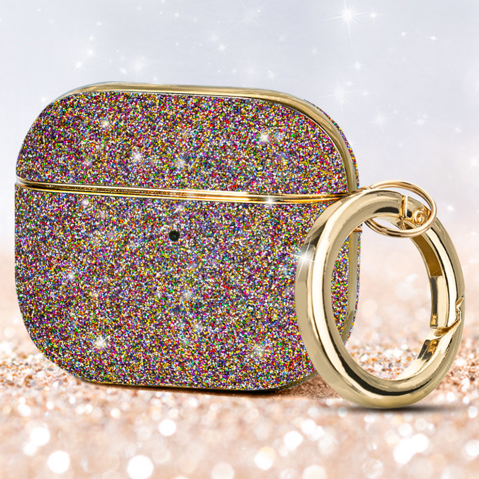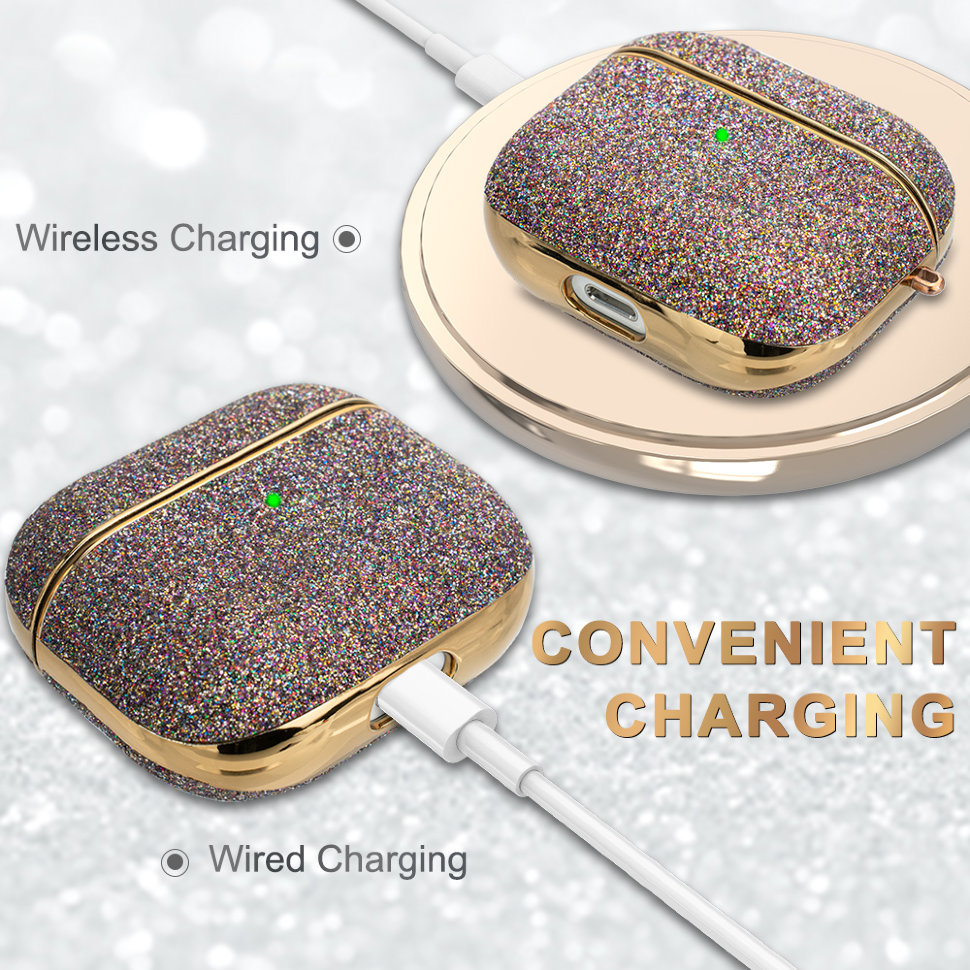 Жёсткий кейс с покрытием из глиттера не только украшение для Apple Airpods, но и надежная защита |
