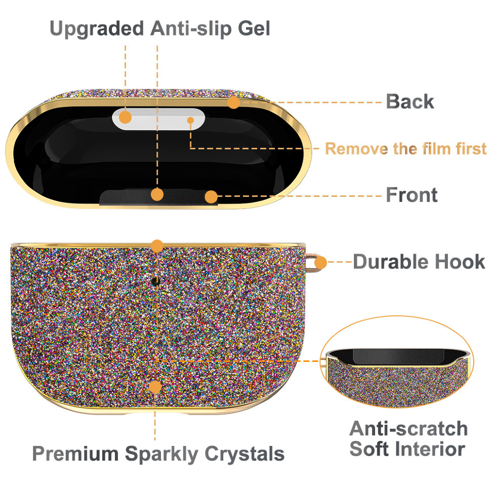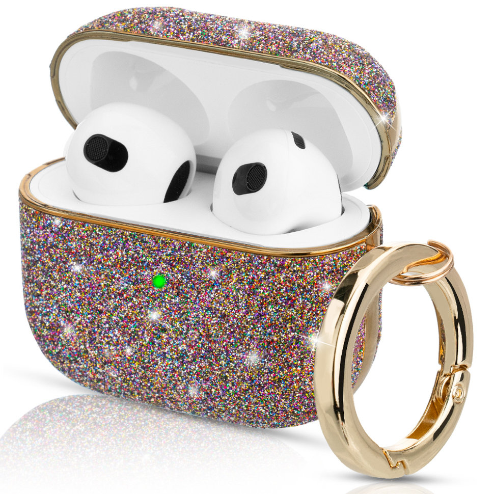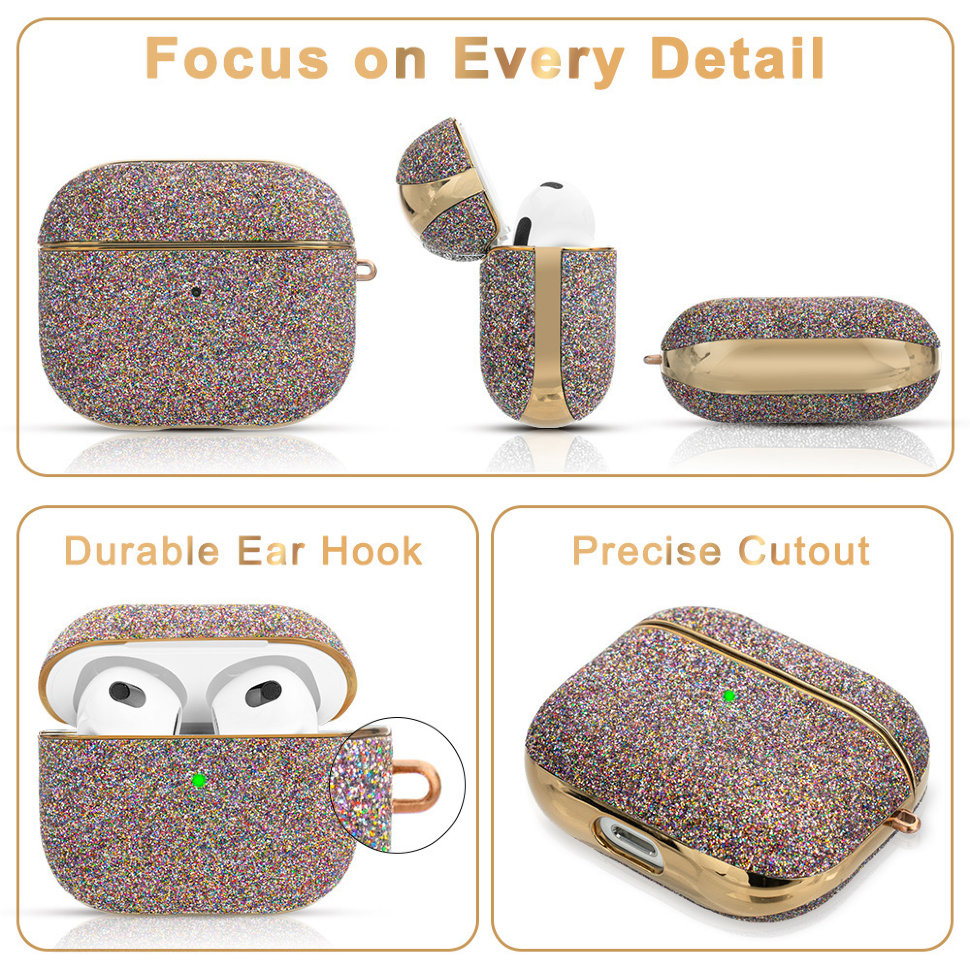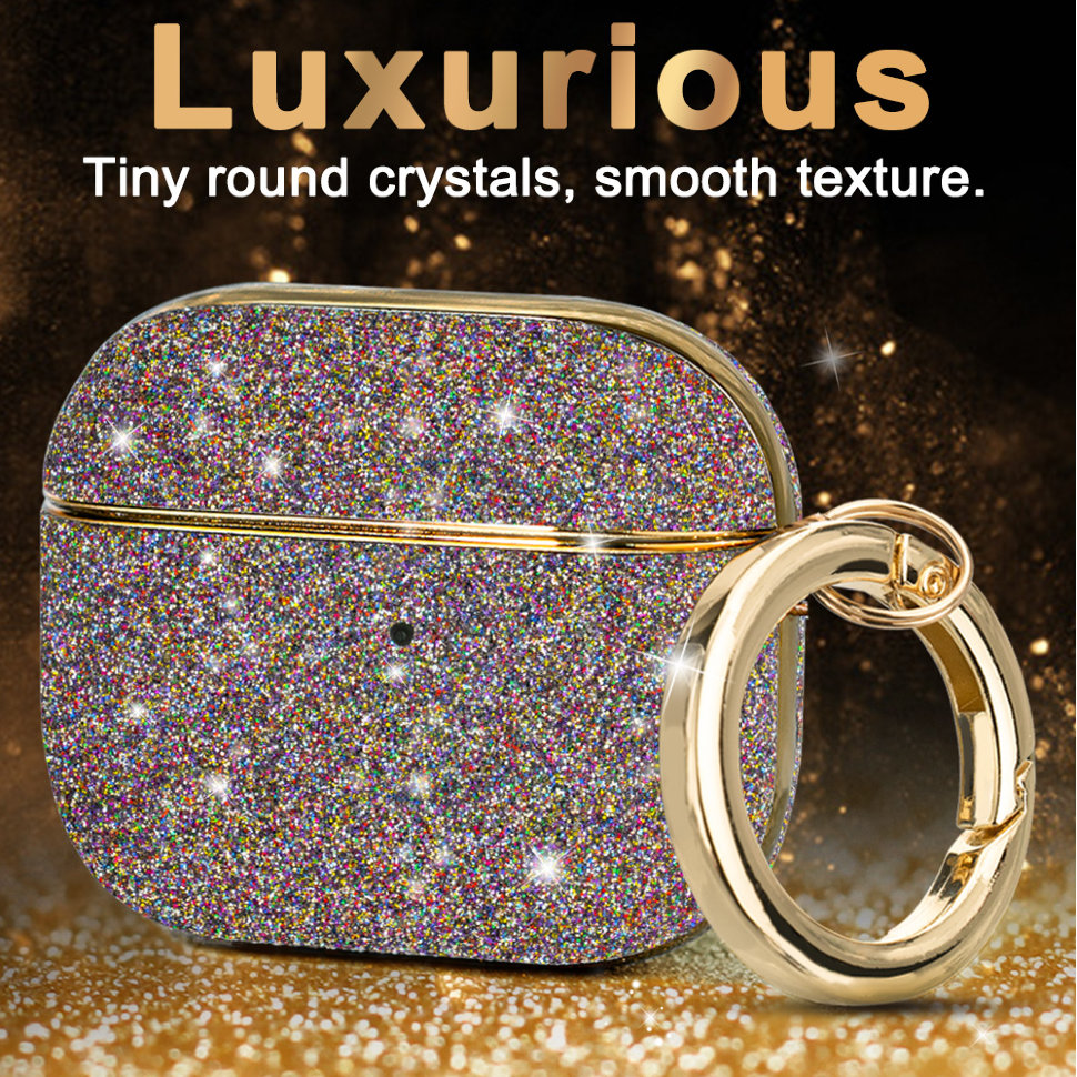 Жёсткий кейс с покрытием из глиттера не только украшение для Apple Airpods, но и надежная защита |