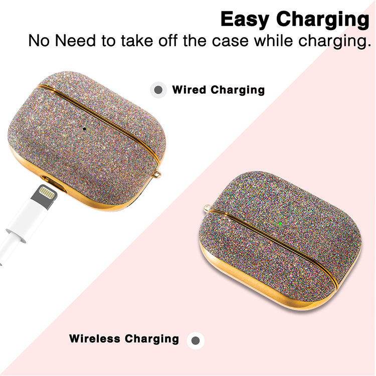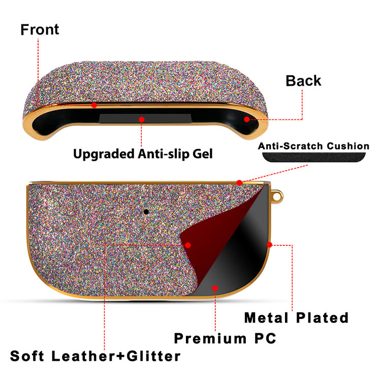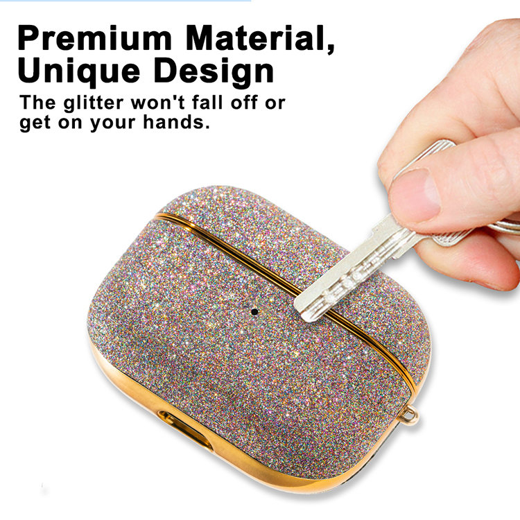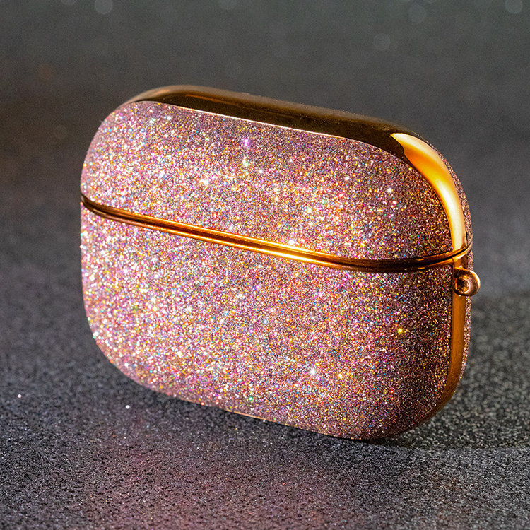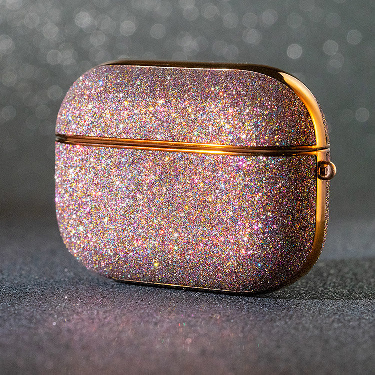 Жёсткий кейс с покрытием из глиттера не только украшение для Apple Airpods, но и надежная защита |