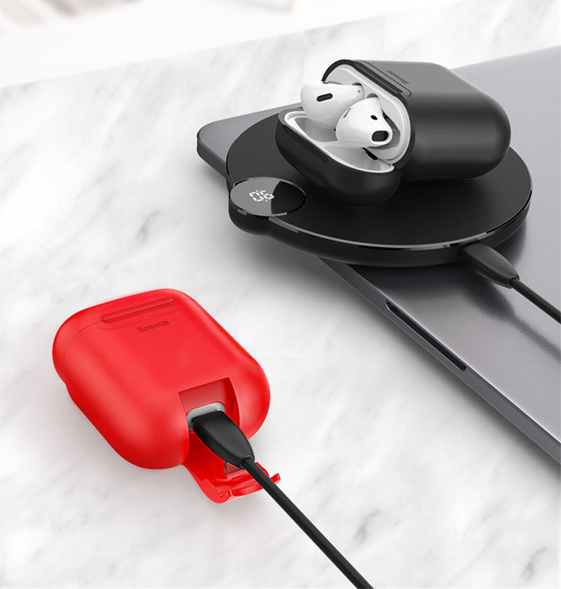 Чехол для Apple Airpods от Baseus не только способен обеспечить сохранность зарядного кейса, но также подарит вам возможность пополнять заряд аккумулятора от беспроводных зарядок! |