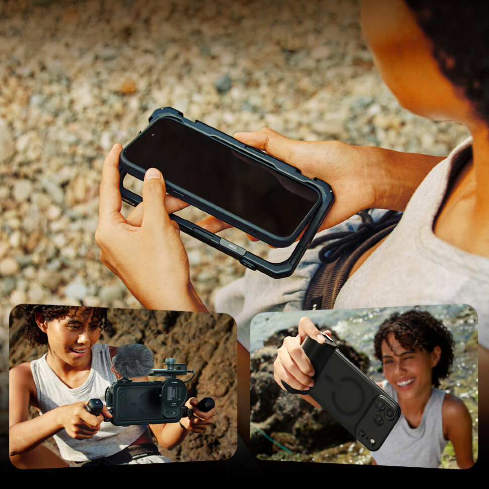 Стильное решение для мобильной съёмкиЧехол FilMov спроектирован специально для 17 Pro/Pro Max модели iPhone и обеспечивает комплексную защиту от ударов, влаги и пыли, сохраняя стильный внешний вид. Благодаря мощному магнитному кольцу чехол сохраняет полную совместимость с аксессуарами MagSafe, включая беспроводную зарядку. В комплекте сменные адаптеры для установки объектива с байонетом T-mount или 17мм |