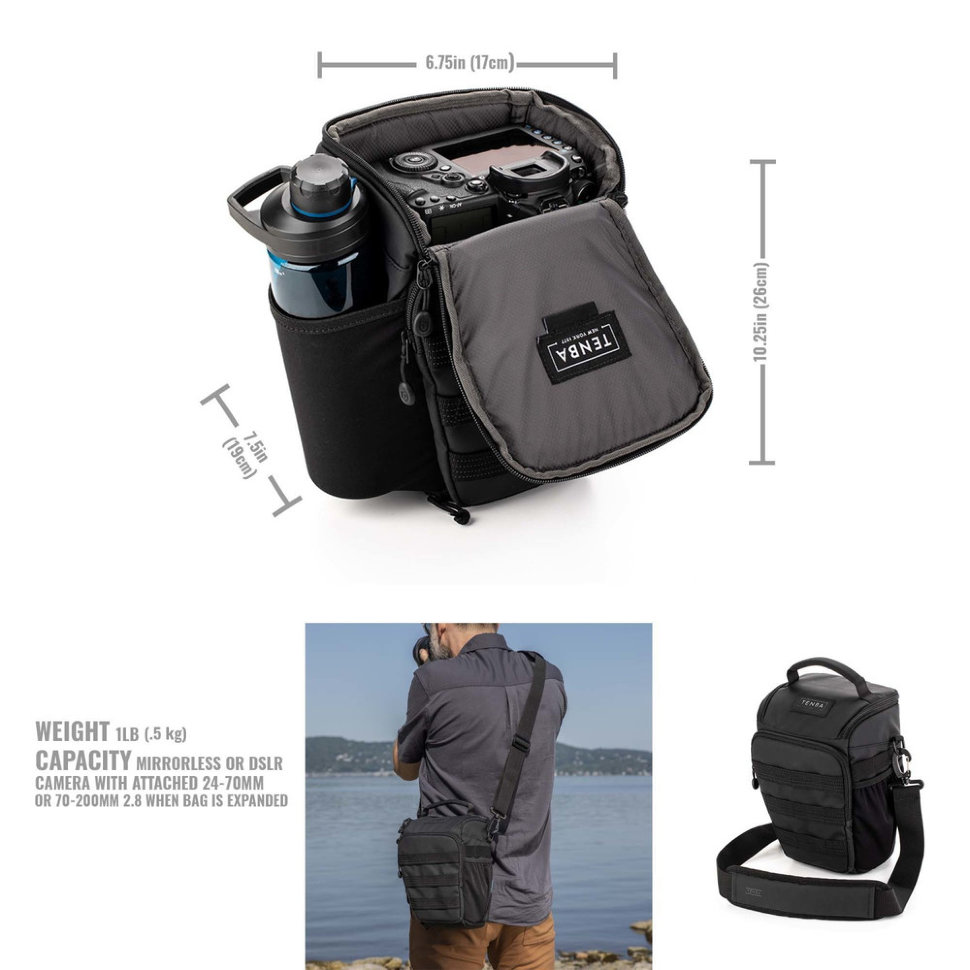 Эргономичный дизайнНесмотря на свои небольшие размеры, Tenba Axis v2 версии на 4 литра - вместительная сумка для съемочного оборудования. Она сама по себе является довольно вместительной, но также ее внутреннее пространство можно увеличить почти в два раза благодаря расширяемому дну. Сумка с легкостью вместит в себя беззеркальную или цифровую зеркальную камеру с уже установленным объективом 24-70 мм или 70-200 мм 2,8 при расширении сумки. Кроме того, она также подходит для DJI Mavic и других компактных дронов |