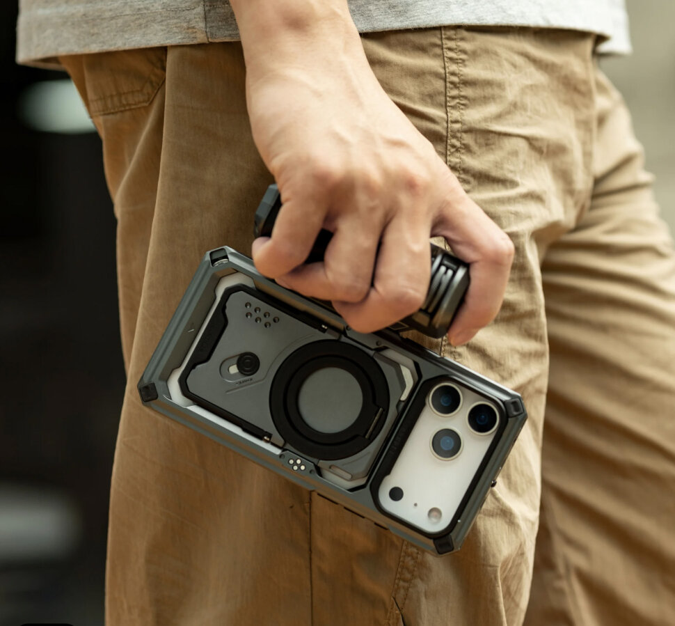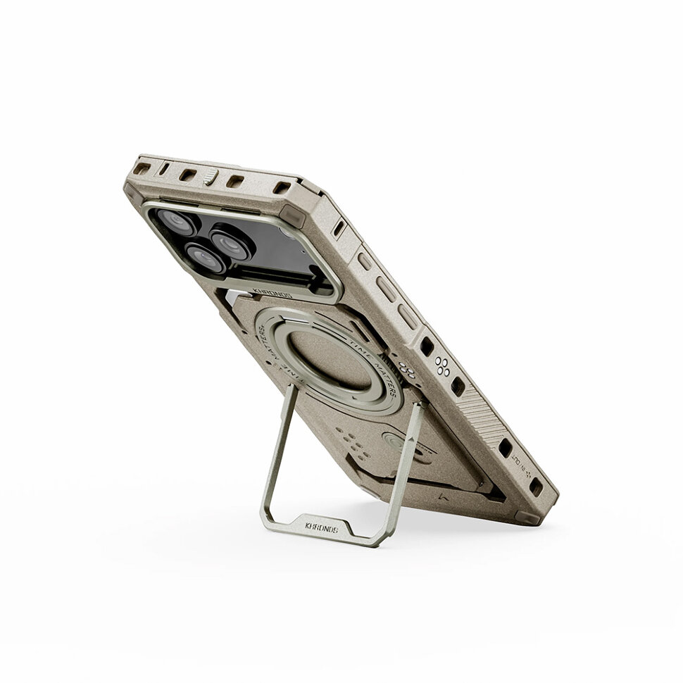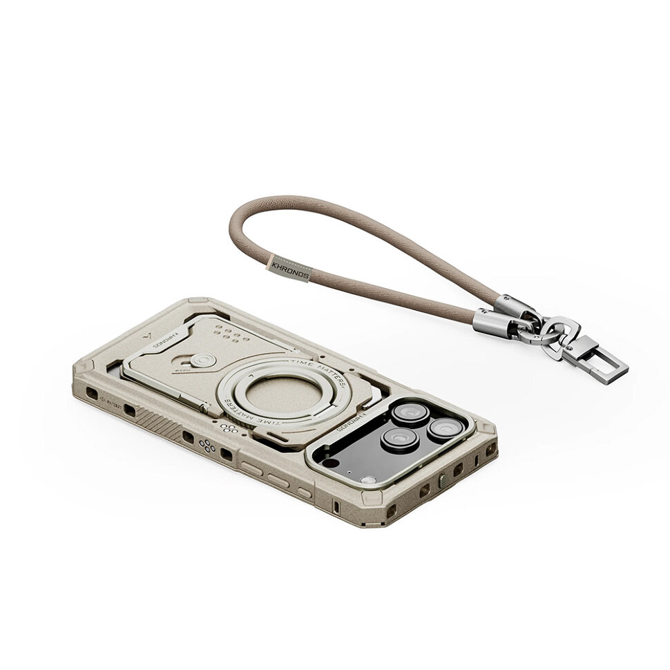 Стиль, переосмысленный для профессионального творчестваОбновленный чехол Khronos, созданный для серии iPhone 17 Pro - это значительно больше, чем защитный аксессуар. Это концептуальная платформа, вдохновлённая профессиональным кинооборудованием, где эстетика встречается с практичностью. Обновленная модель съёмной задней панели получила более устойчивую подставку, сильный магнит MagSafe, а также доработанное функциональное лезвие. В комплект был добавлен прочный ремешок на запястье, что спасёт от случайного падения |
