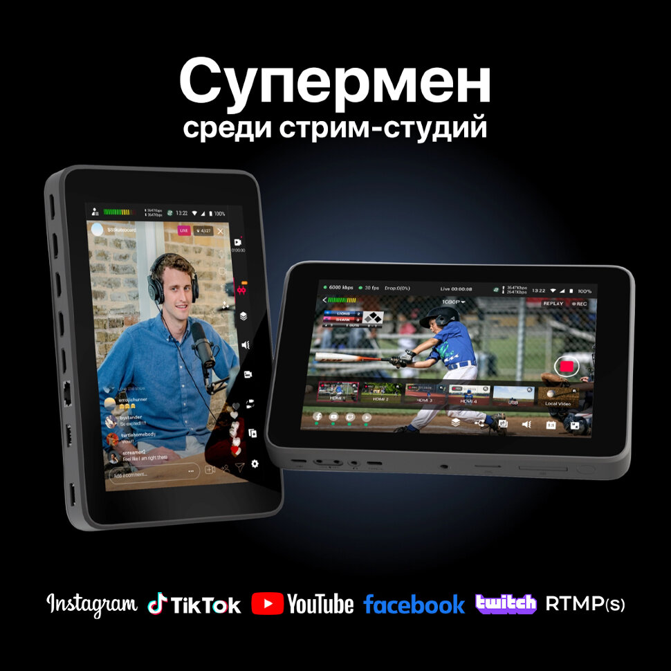 Настройте его по-своемуСочетание YoloBox Pro и Instream превращается в YoloBox Ultra. Помимо стандартных горизонтальных платформ, можно вести вертикальную трансляцию в Instagram, TikTok без необходимости приобретать Instream. YoloBox Ultra оснащен технологией высокоэффективного кодирования видео (HEVC), также известной как H.265. Благодаря HEVC достигается значительное снижение требований к пропускной способности более чем на 50 % при сохранении высочайшего качества видео |