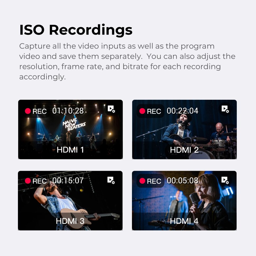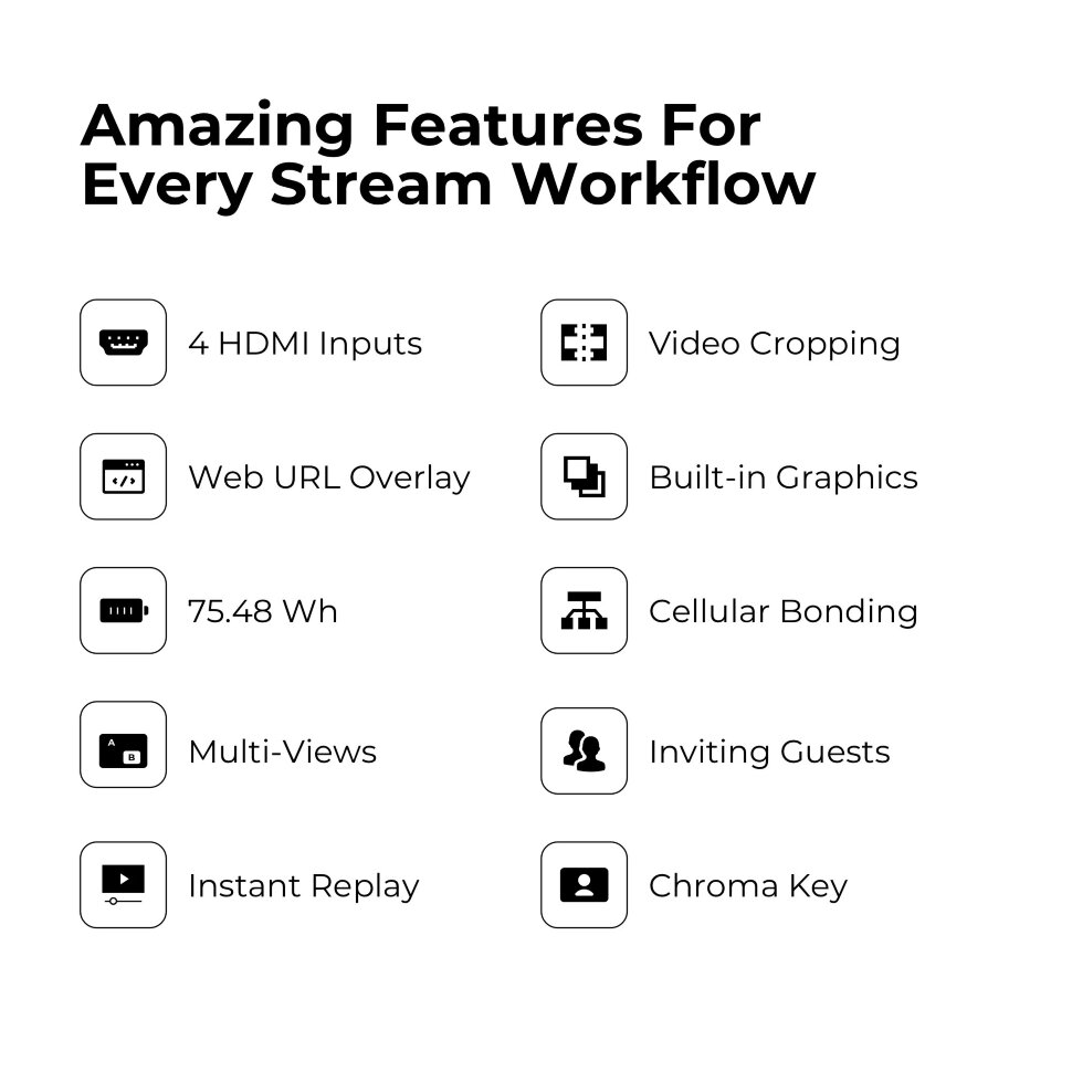 Гибкость производства нового уровняДобавьте до четырех входов HDMI, трех входов USB, трех одновременных живых IP-источников (включая потоки SRT,RTMP и NDI® HX) или медиа-активов (включая видеоклипы, PDF-файлы и изображения), и одновременный вывод через Wi-Fi, 4G LTE или Ethernet на шесть направлений, таких как Facebook, YouTube или Twitch, используя RTMP или SRT |
