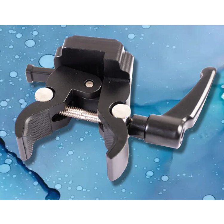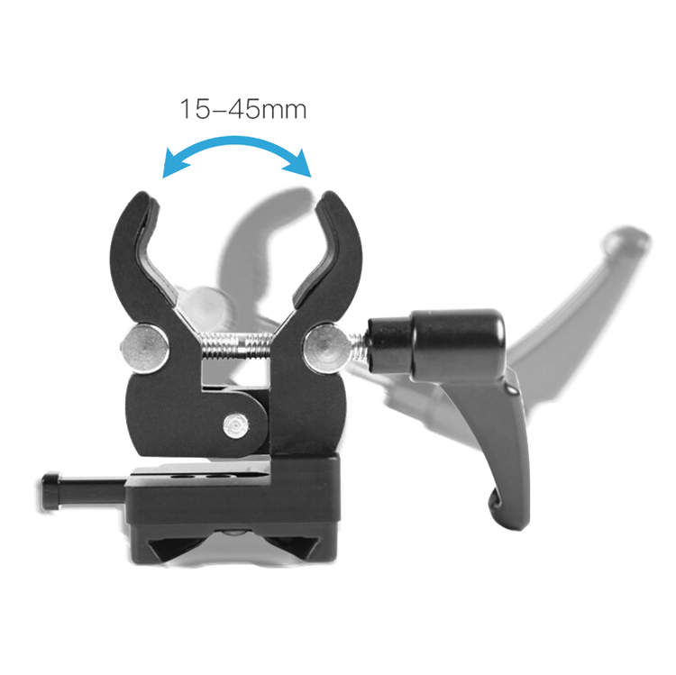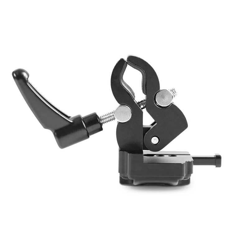 Имеет надежную конструкцию и систему блокировки. На внутренней части зажима предусмотрены специальные противоскользящие вставки. Имеет винтовое отверстие 3/8" |