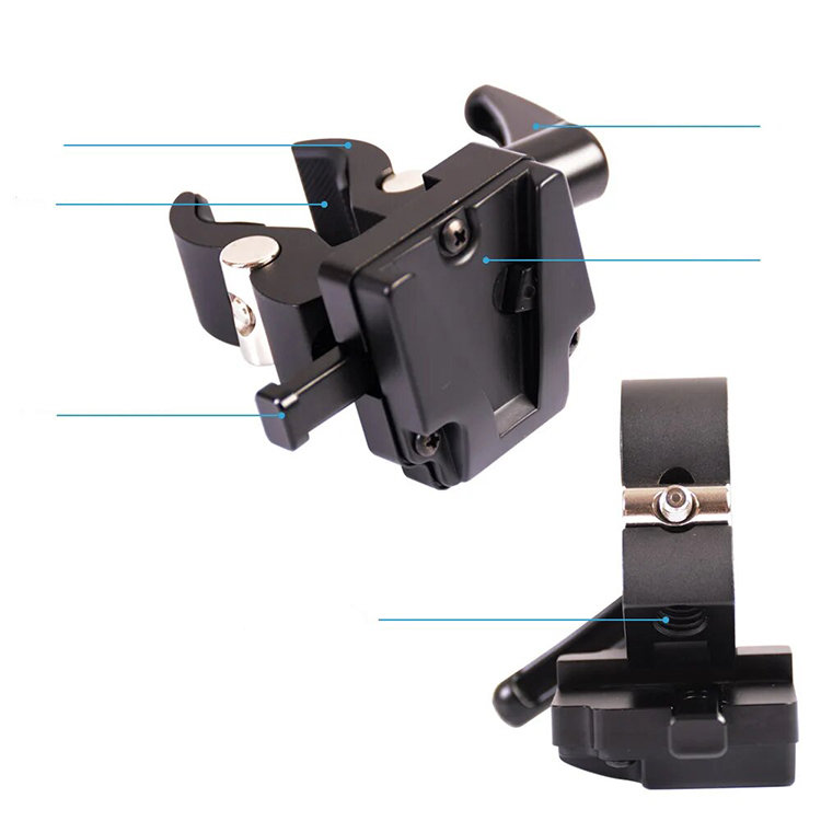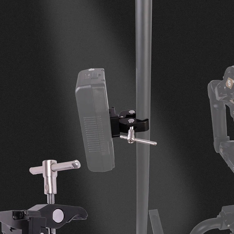 Держатель зажим с адаптером для установки аккумулятора V-mount. Подходит для стойки, кронштейна или различных элементов интерьера толщиной от 15 до 45 мм |