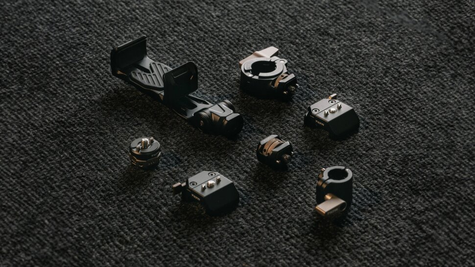 Конструкция изготовлена из прочного алюминия и нержавеющей стали, гарантирующей износостойкость устройства. Крепление можно наклонить на 180° и повернуть на 360°, что позволяет легко менять угол обзора и адаптировать положение смартфона под разные условия. В верхней части предусмотрен адаптер холодного башмака для осветителя, микрофона или иного оснащения |
