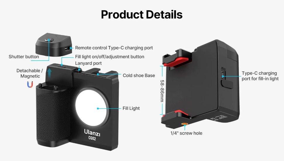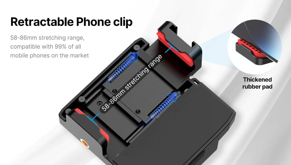 Функциональный держатель для смартфона от 58 до 86 мм превратит его в настоящую камеру! Более удобный хват для съёмки одной рукой, а также съёмный bluetooth пульт помогут организовать профессиональную работу |