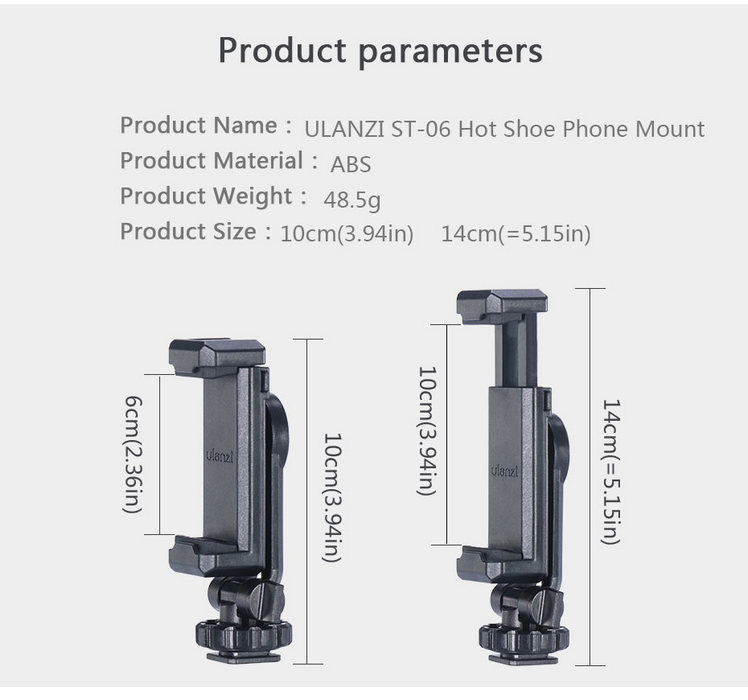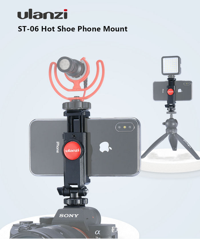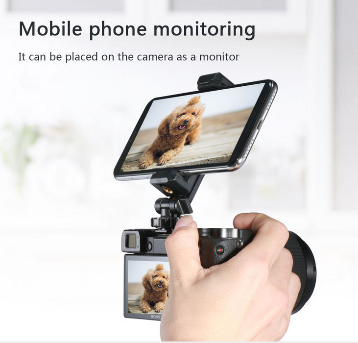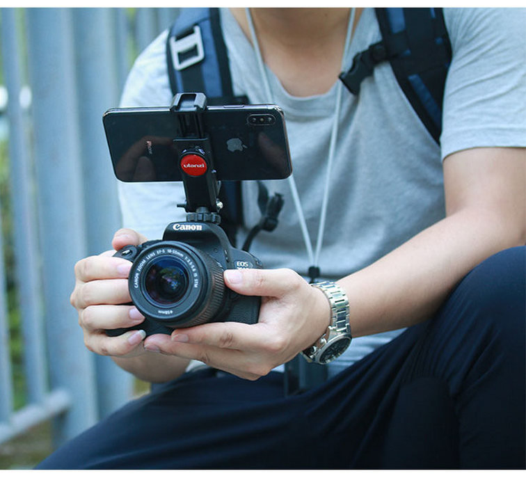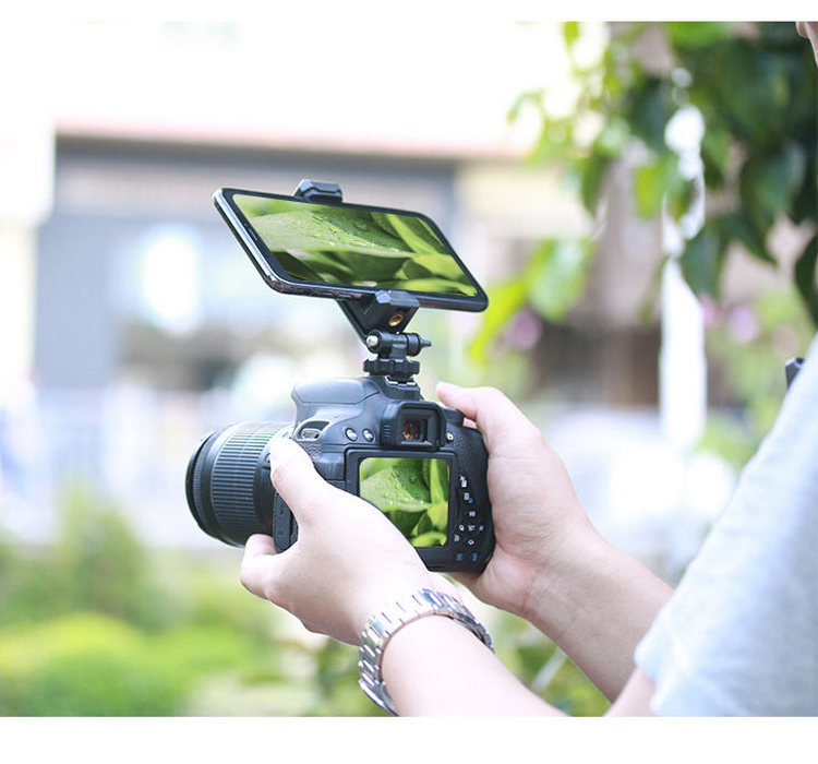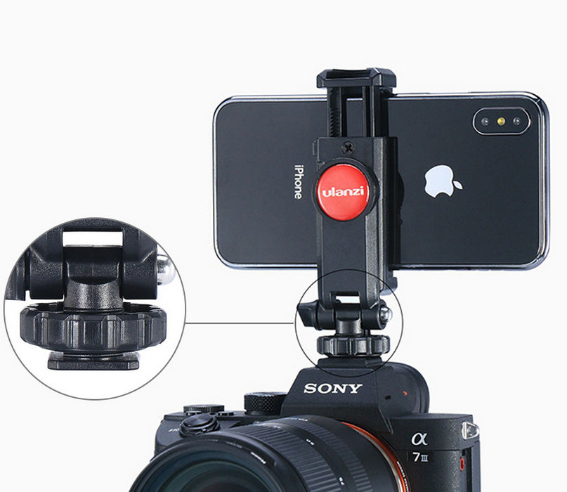 Держатель крепится на стандартный винт 1/4". В верхней части предусмотрен холодный башмак для установки дополнительного съёмочного оборудования |
