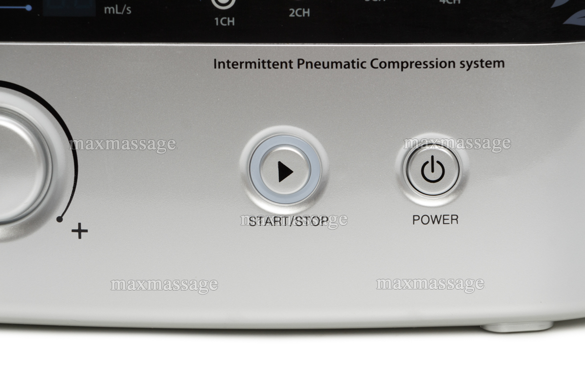 Панель управления не переведена на русский язык, но при этом не вызывает затруднений в использовании. От других моделей LX9 отличается возможностью самостоятельно устанавливать давление (Pressure), время (Time) и скорость накачки манжет (Speed). Для этого необходимо нажать на кнопку напротив настраиваемой позиции и с помощью поворотного переключателя выбрать необходимые показатели. В правом верхнем углу функция «Mode» отвечает за режимы работы. Переключать их можно лёгким касанием круглой кнопки со стрелкой. Рядом с выбранным режимом сразу же загорится лампочка-индикатор: A – Массаж; B – Лимфодренаж; C – Авто; D – Прессотерапия. Режимы следуют по очереди, для того чтобы переключить режим, к примеру, со второго на первый, необходимо нажать на кнопку три раза. Справа, чуть ниже выбора режимов, находится схематическое изображение ноги и расположение на ней камер манжеты. За каждую камеру отвечает свой индикатор и своя кнопка. Во время процедуры Вы можете наблюдать за тем, какая из камер работает или отключена в данный момент. Для включения или отключения определённой камеры нажмите на соответствующую кнопку. В самом низу панели располагаются кнопка включения/выключения аппарата – POWER и кнопка запуска или остановки процедуры – START/STOP. Для большего удобства данная кнопка подсвечивается зелёным цветом, поэтому их практически невозможно перепутать. |