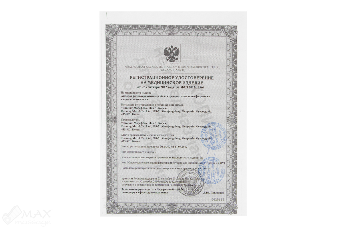 Наличие регистрационного удостоверения указывает на то, что массажные аппараты могут быть использованы не только в домашних условиях, но и в медицинских и лечебно-профилактических учреждениях, салонах красоты и клиниках пластической хирургии. Техника Doctor Life прошла все проверки и тестирования, необходимые для медицинских аппаратов.
