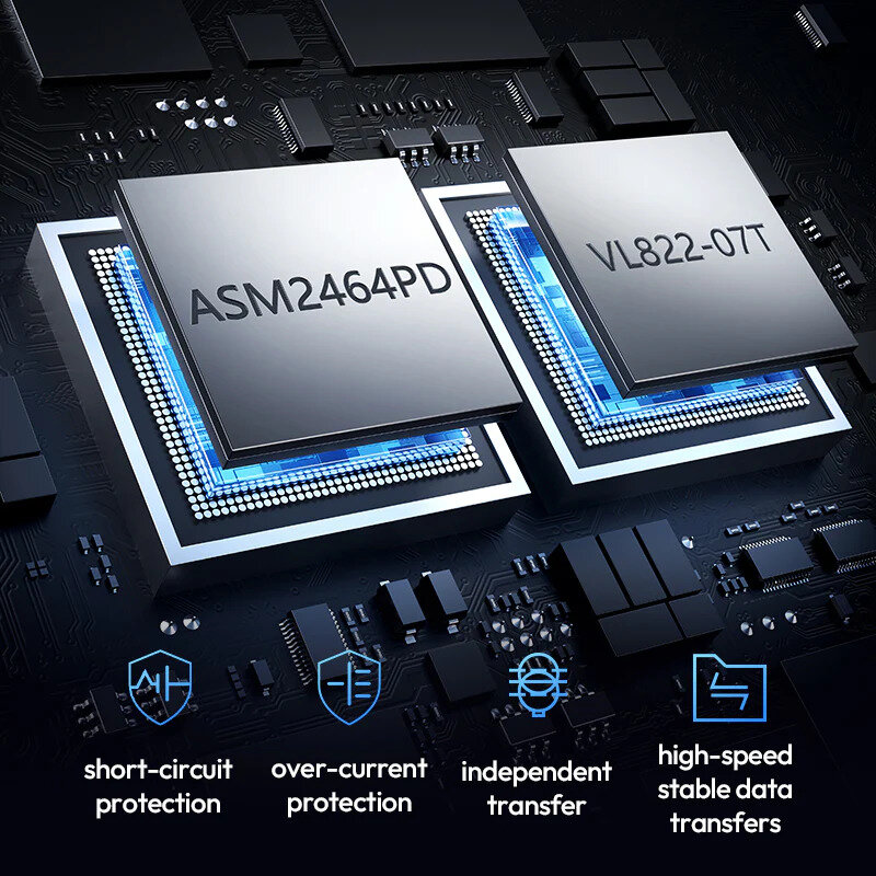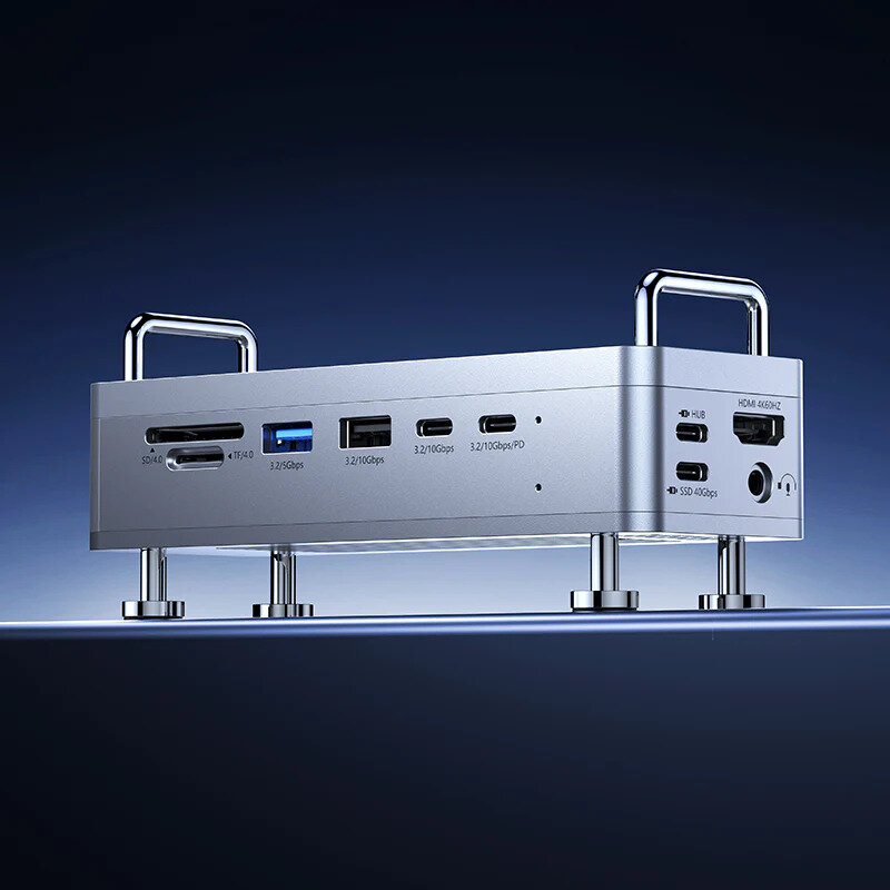 Скоростная передача данных и многопортовостьОснащена чипами ASM2464PD и VL822-07T для поддержки стандарта USB4 с пропускной способностью до 40 Гбит/с. Конфигурация портов включает: два USB, два Type-C, слоты SD/TF 4.0 с одновременным чтением/записью на скорости до 312 МБ/с, HDMI 4K60Hz для подключения внешнего дисплея, а также 3.5 мм аудиоразъем и порт PD 3.0 с входной мощностью 100 Вт и выходной 85 Вт. Это позволяет одновременно подключать множество утсройств обеспечивая удивительную производительность |