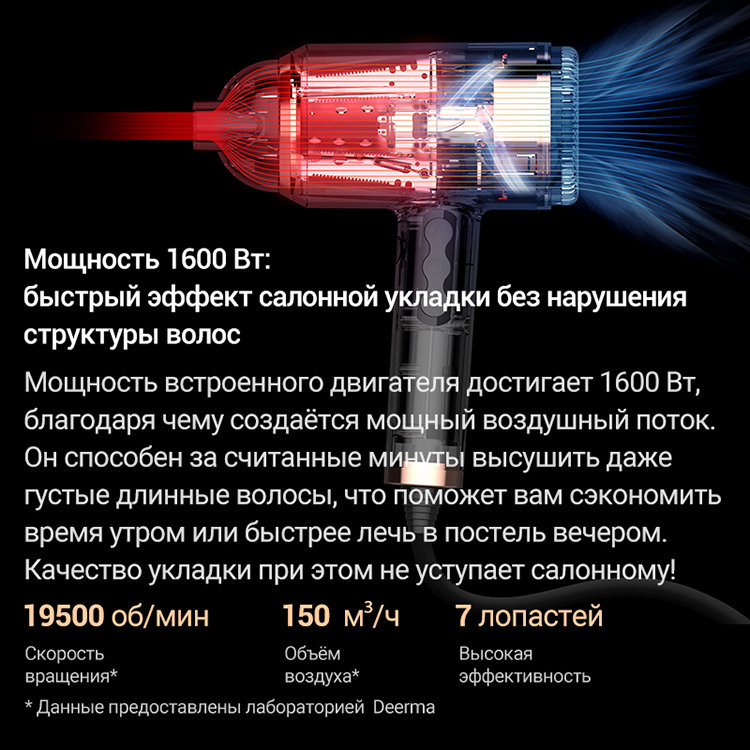 Мгновенная сушка без повреждения волосВстроенный двигатель обеспечивает мощность до 1600 Вт. Это позволяет достичь быстрой сушки без повреждения структуры волос. С его помощью можно быстро высушить и уложить как длинные, так и густые локоны. Благодаря этому вы сможете экономить время при сборе на работу или деловую встречу |