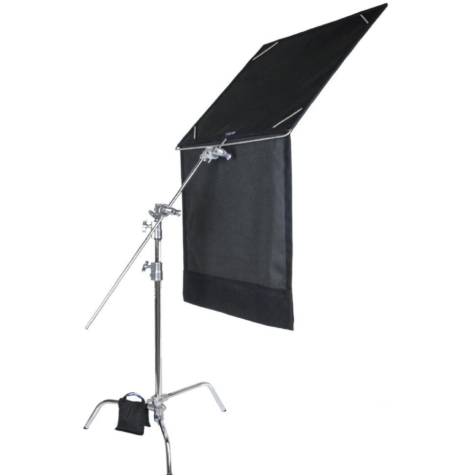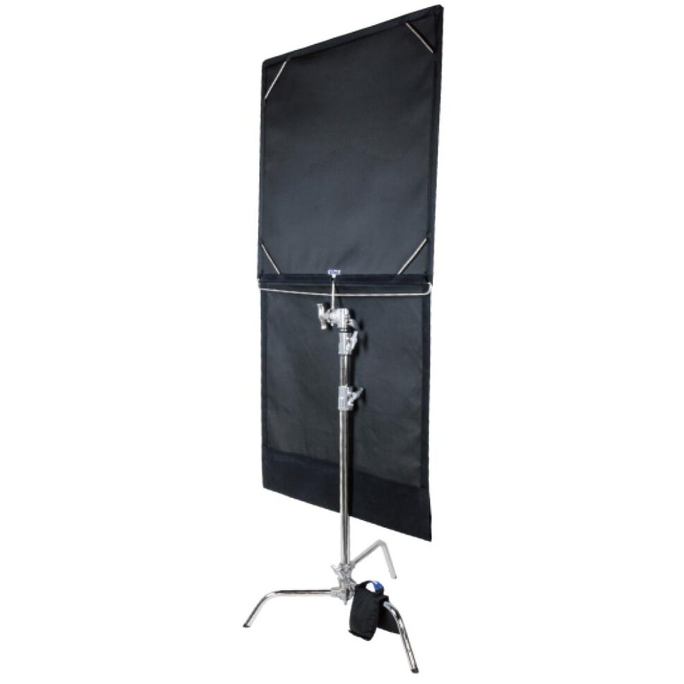 Трансформируемая система управления светомФлаг KUPO KT-4848TF Top Hinge Floppy Full Frame размером 120×120 см из нейлона 600D Cordura на стальной раме обеспечивает профессиональный контроль освещения. Уникальная конструкция с верхним шарниром позволяет за 5 секунд развернуть флаг до 120×240 см (отсоединив липучку), создавая широкую зону затемнения или отсечения света. Предусмотрен карман ∅10 мм для устранения провисания при помощи груза |
