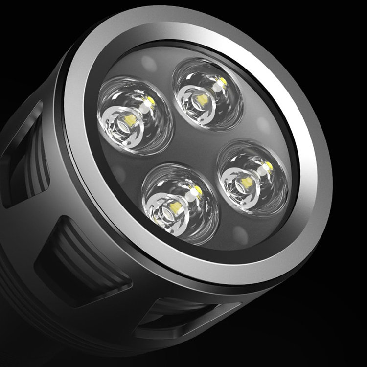 Дальность освещения составляет до 450 метров, а световой поток устройства - 3600лм. Мощность освещения 10Вт обеспечивает яркое и равномерное освещение. А водонепроницаемая защита IPX7 гарантирует фонарику безопасность во время попадания на него влаги и дождя |