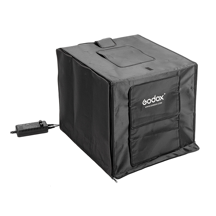 Конструкция в виде куба с внутренней отражающей поверхностью и собственным светодиодным освещением для предметной съёмки. Имеет в комплекте черный и белый фон |