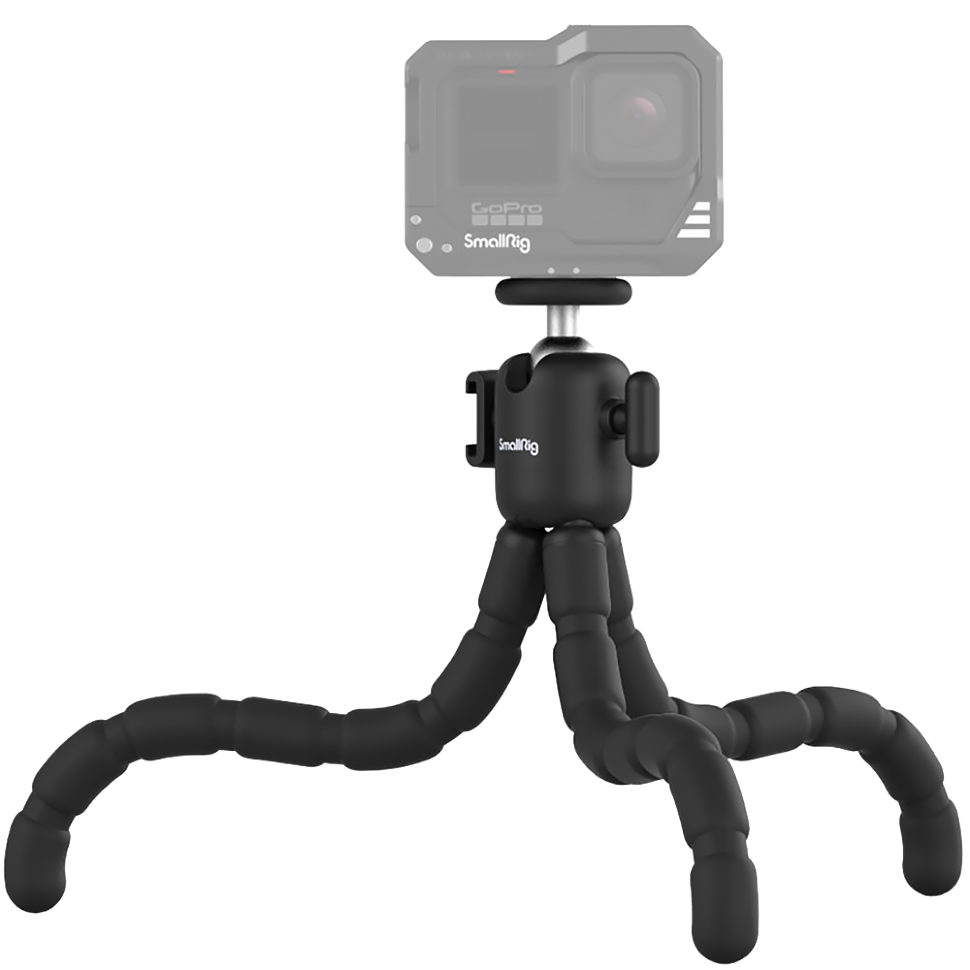 Эргономичный штатив с гибкими ножками для съемки на экшн-камеру и мобильного устройства. Может испол..