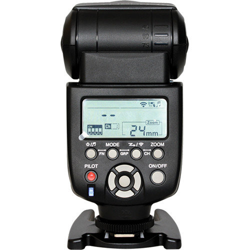 | Модель способна запоминать последние рабочие настройки при отключении. Вспышка работает от четырех батареек типа АА и автоматически выключается при перегреве. В конструкцию встроен убираемый рассеиватель, а в комплекте присутствует настольная подставка, для дистанционного использования |