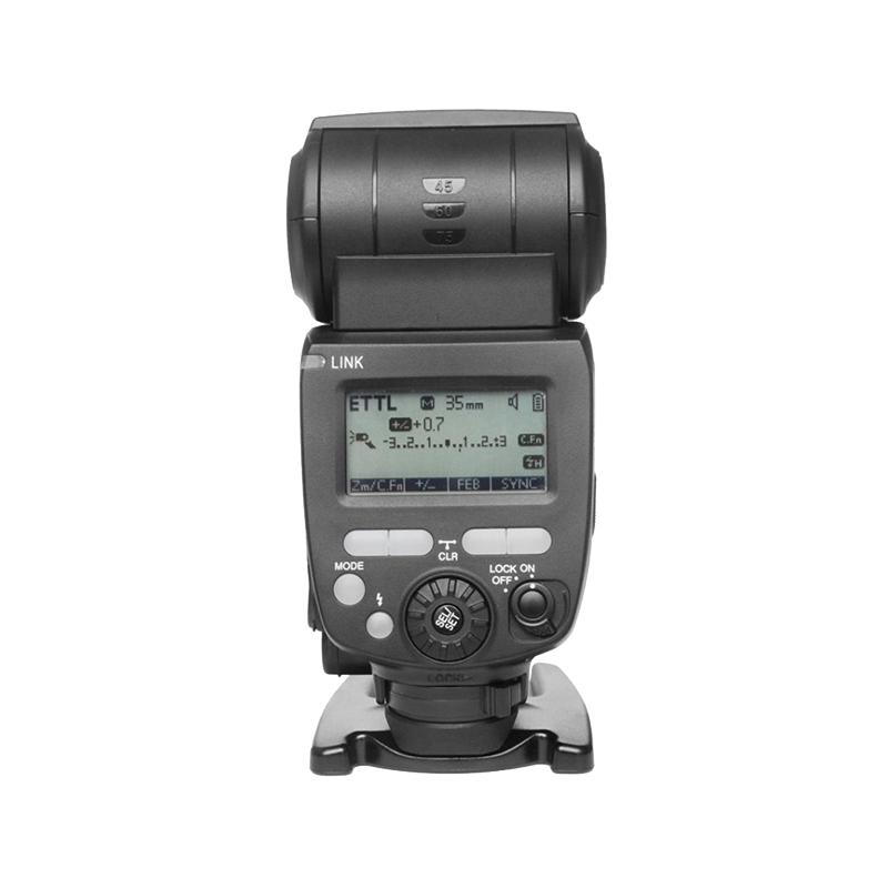Накамерная вспышка имеет несколько режимов срабатывания по двум шторкам, синхроконтакт и разъем для зарядки от внешних источников питания. Фотовспышка может вращаться по горизонтали на 180 градусов. Функционирует от 4 батареек типа АА. Предусмотрена система крепления холодный башмак, диффузор и отражатель |