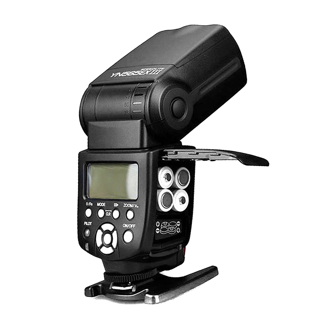 Обновленная версия вспышки YN-565 EX третьего поколения для камер Nikon получила micro USB порт для обновления прошивки и более информативный дисплей. Устройство питается от четырёх аккумуляторов типа АА и на максимальной мощности скорость перезарядки составляет около 3 секунд. Управление вспышкой устроено просто и интуитивно понятно |
