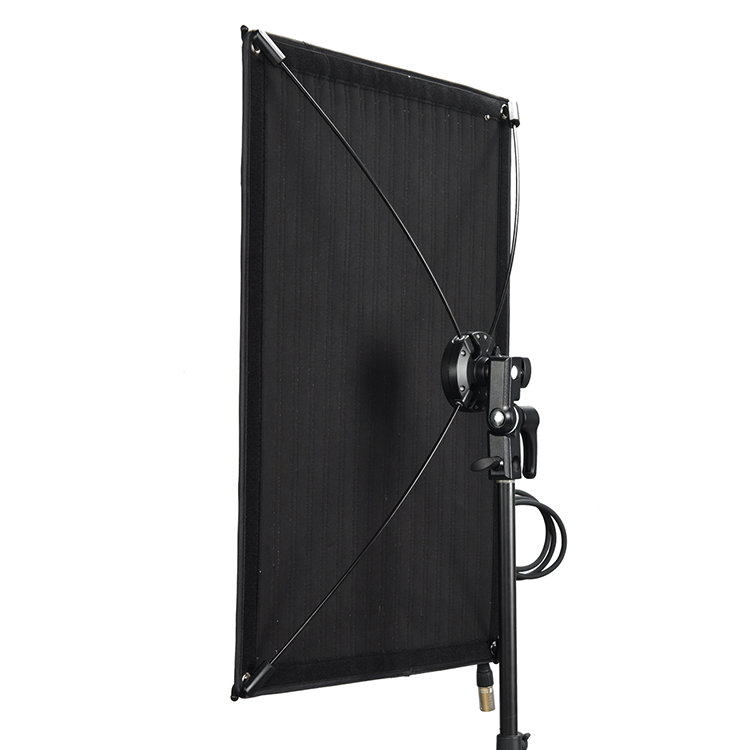 Гибкий светодиодный осветитель, имеет эластичную основу, что даёт возможность предать ему любую форму и, соответственно, угол светового потока. Растянуть FL100 в панель можно при помощи специального каркаса |