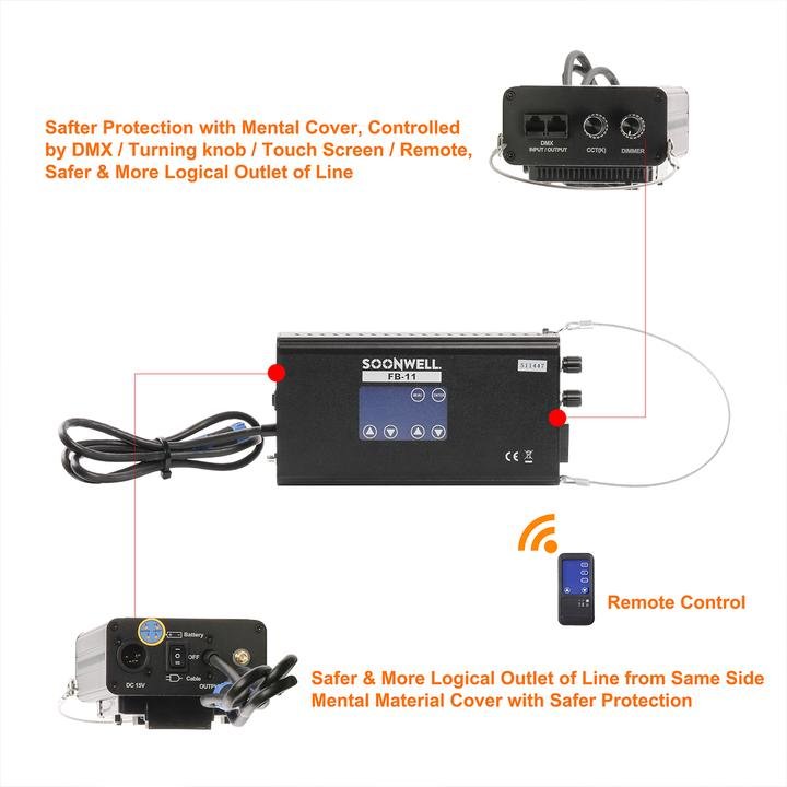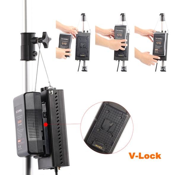 Сенсорный дисплейБлок управления имеет яркий LED экран с сенсорным управлениям, что позволяет управлять и настраивать работу прибора, даже в полной темноте, а также следить за состоянием аккумулятора. Для автономной работы предусмотрена возможность установки аккумулятора типа V-mount |