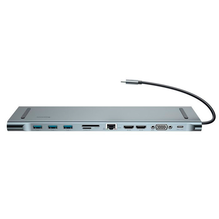 Функциональный разветвитель нового поколения от компании Baseus. Представленный аксессуар представляет собой устройство со встроенным картридером и подключением USB-C, а также с выходными портами USB 3.0, VGA, HDMI, RJ-45, audio 3.5 мм и Type-C. С его помощью вы сможете улучшить функциональные возможности своего планшета, ноутбука и любого другого портативного устройства. Скорость записи достигает 5 Гбит/сек. С его помощью вы сможете заряжать мобильные гаджеты на работе и дома |