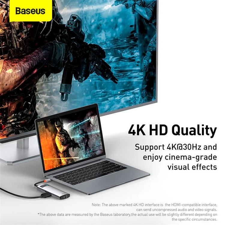Порт сквозной порт питания Type-C поддерживает быструю зарядку по протоколу Power Delivery до 100 Вт. Имеется поддержка разрешения 4K HD на HDMI и молниеносная передача данных со скоростью до 5 ГБ/с |