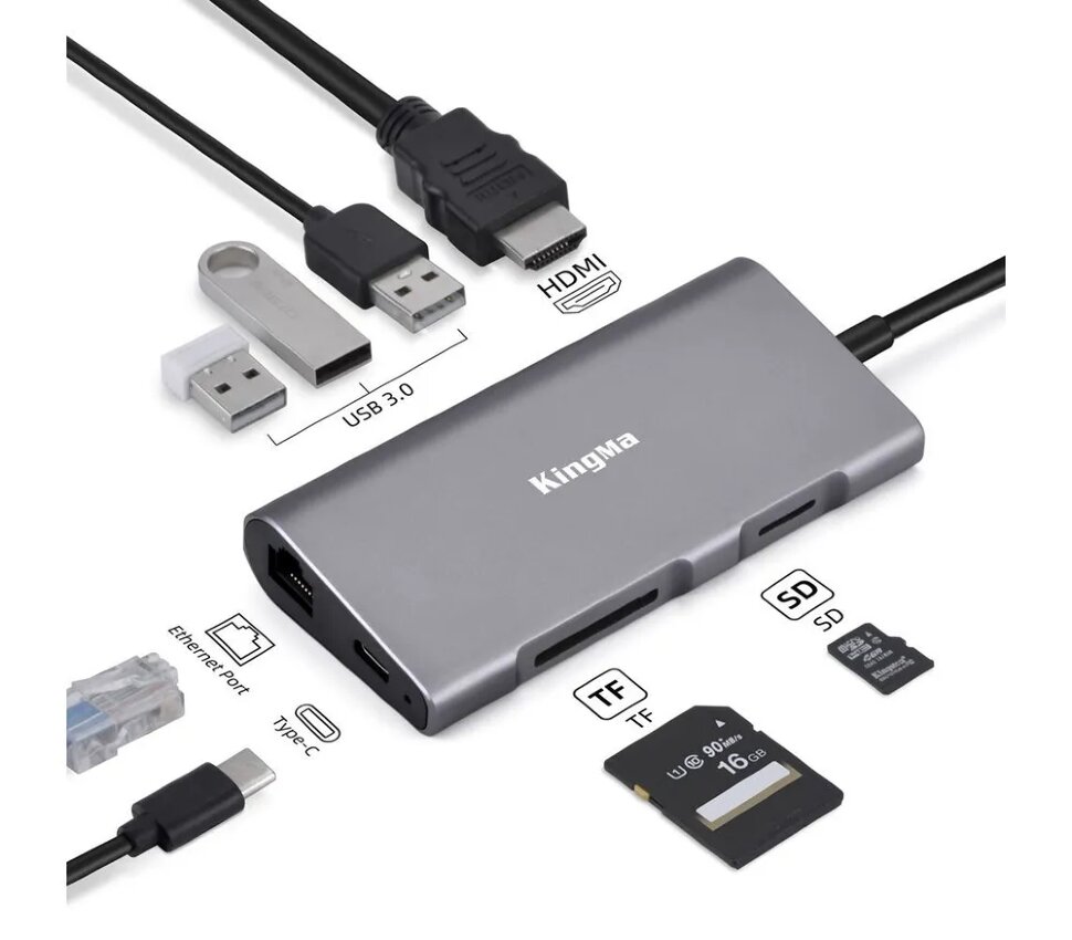 Многофункциональный хаб создан для расширения возможностей вашего умного гаджета с Type-C. Подойдет для ноутбука, смартфона или планшета, открывая доступ к работе с переферийным устройствам. Хаб имеет слоты для чтения карт памяти SD и TF, целых три USB, видеопорт HDMI, а также Ethernet до 1000мб/с |