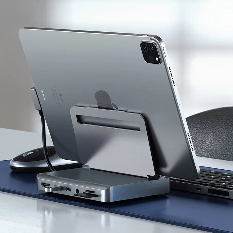 Портативная док-станция для установки планшета или тонкого ноутбука с Type-C подключением для расширения функционала гаджета. Предусмотрена возможность самостоятельно корректировать угол наклона, благодаря чему работа с планшетом станет еще более комфортной и легкой |