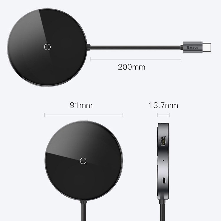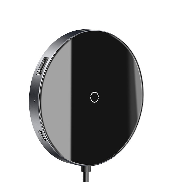 Хаб с беспроводной зарядкой Baseus Circular Mirror (USB х4 + Type-C PD) Серый