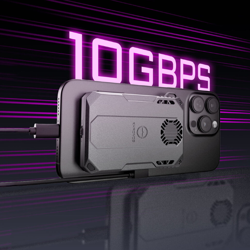 3 функции в 1 корпусеCooling Storage System экосистемы Khronos обеспечивает охлаждение смартфона, возможность установки дополнительной памяти и всё это с поддержкой быстрой зарядки. Модель имеет магнитное крепление MagSafe и предназначена для iPhone серии 15/16, модели Pro/Pro Max. Встроенный вентилятор обеспечивает эффективный отвод тепла при продолжительной съёмке, работая практически бесшумно. Для подключения используется порт Type-C, через который также осуществляется питание устройства |