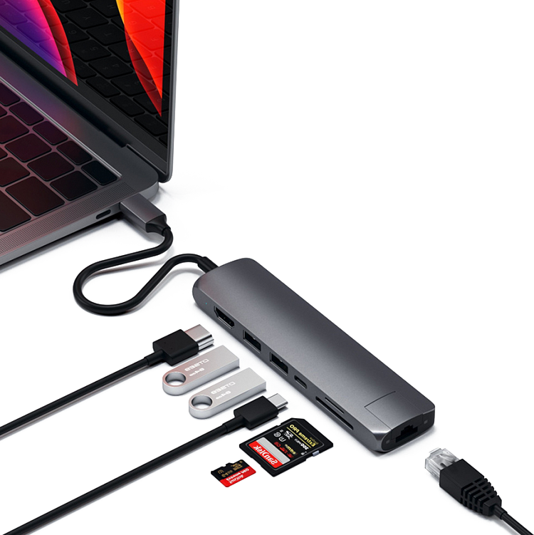 Хаб Satechi Type-C Slim Multiport + Ethernet Adapter Серый космос