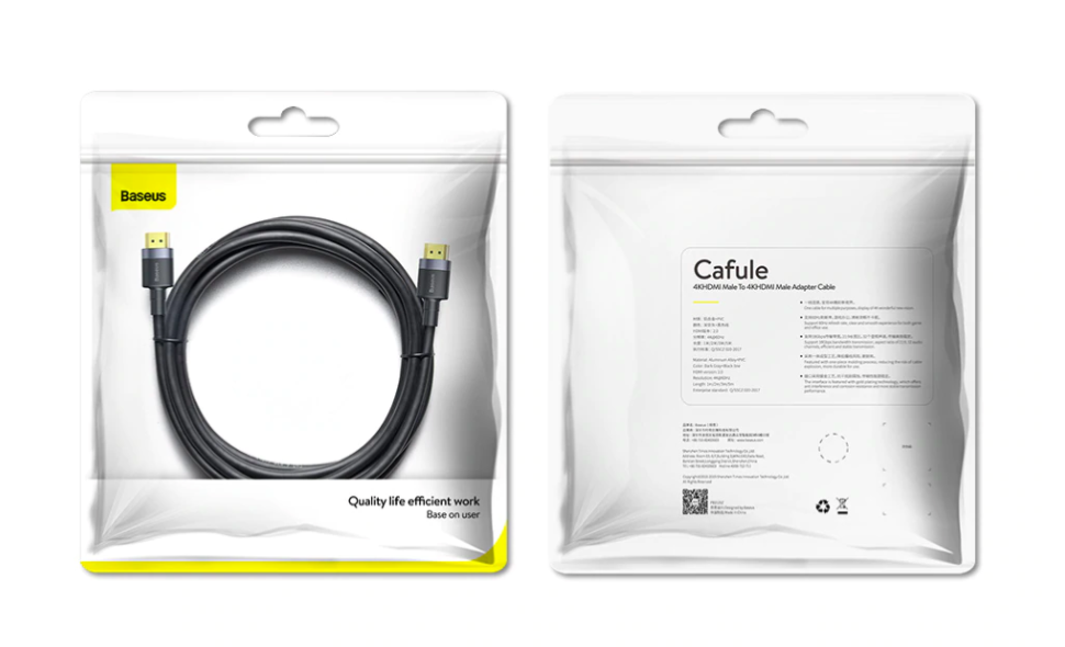 Кабель Baseus Cafule 4K HDMI - HDMI 5м Чёрный