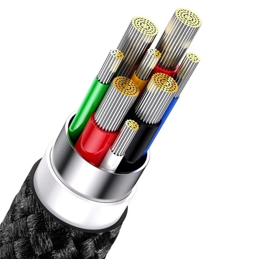 Мощный и надежный кабель с общей мощностью в 100 Вт для подзарядки сразу нескольких устройств одновременно. Аксессуар подключается к зарядному устройству Type-c, а на другом конце имеет micro USB (18 Вт), Lightning (20 Вт) и Type-C (100 Вт) |