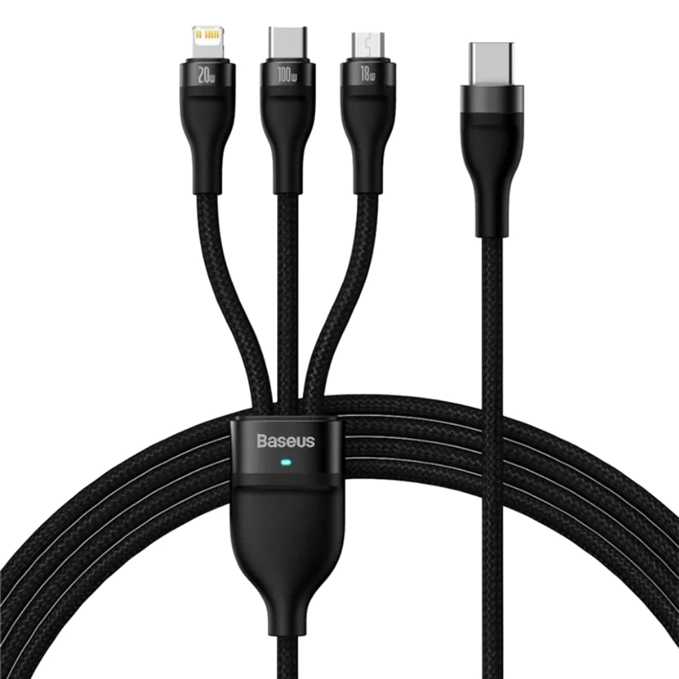 Кабель Baseus Flash Ⅱ One-for-three Type-C - M+L+C 100W 1.5м Чёрный