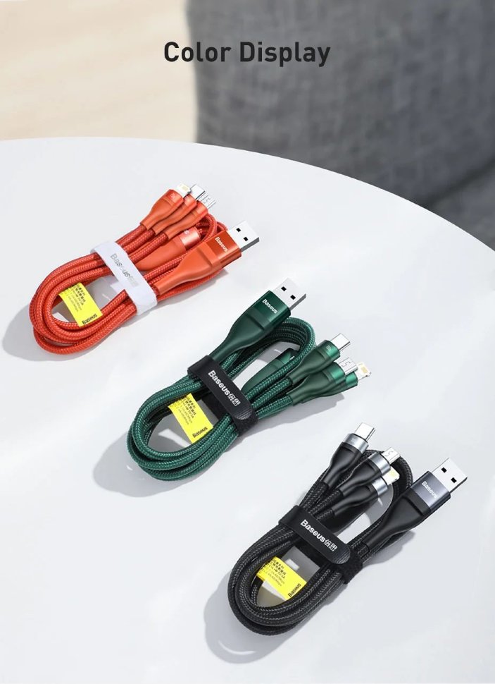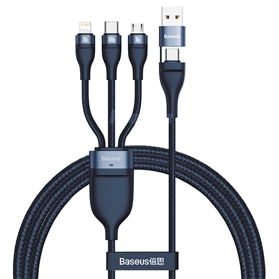 Кабель Baseus Flash Ⅱ Two-for-three U+C - M+L+C 100W 1.2м Синий