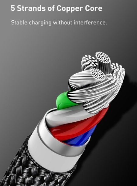 Материал проводника цинковый сплав, кабель имеет нейлоновую оплетку. Отличается повышенной прочностью, гибкостью и легкостью. Встроенная защитная микросхема позволяет предотвратить перегрев во время подзарядки гаджетов |
