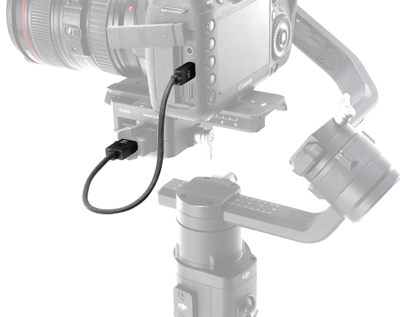 Кабель для подключения камер с портом mini USB к стабилизатору DJI Ronin-S. Соединение позволяет управлять работой камеры с ручки стабилизатора, вы сможете запускать и останавливать съёмку, настраивать автофокус. При помощи колеса Ronin-S вы сможете управлять приближением на объективах с переменным фокусным расстоянием. Если подобный объектив не установлен, то вы сможете управлять цифровым зумом, после включения опции в настройках камеры |