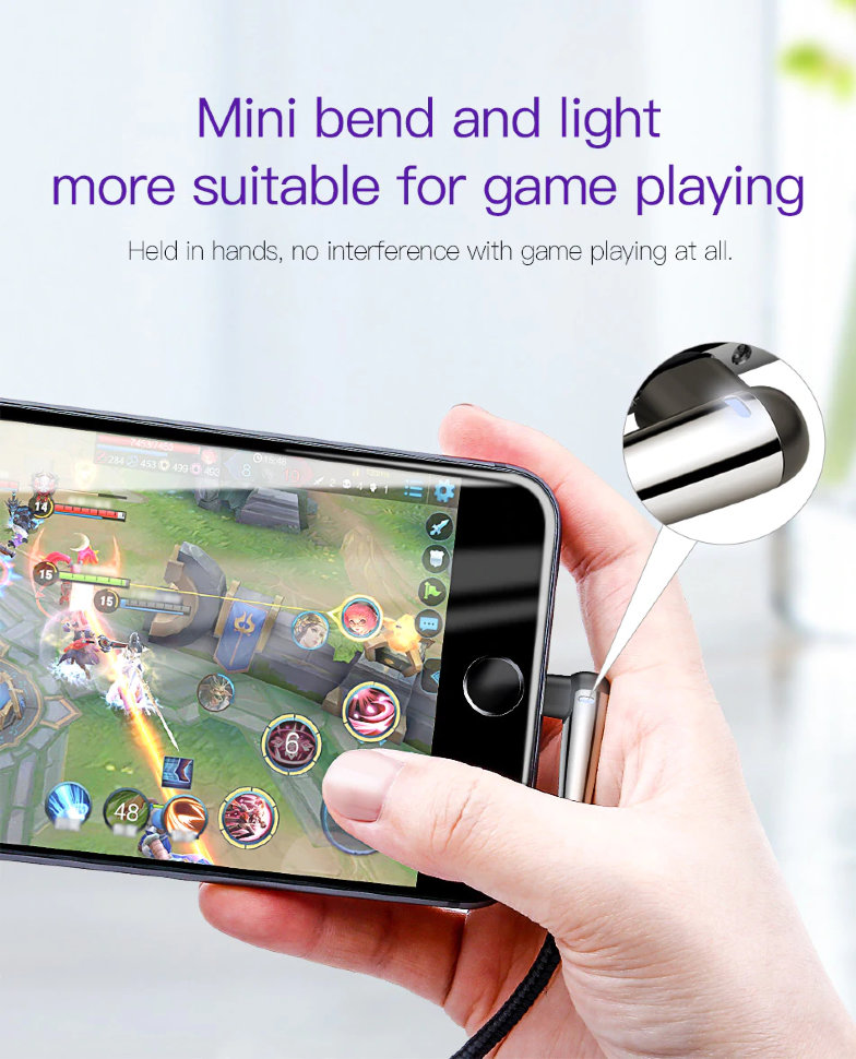 | Зарядный кабель разрабатывался для любителей мобильных игр. Угловой Lightning не мешает держать смартфон обеими руками во время игры или просмотра роликов в горизонтальном положении |