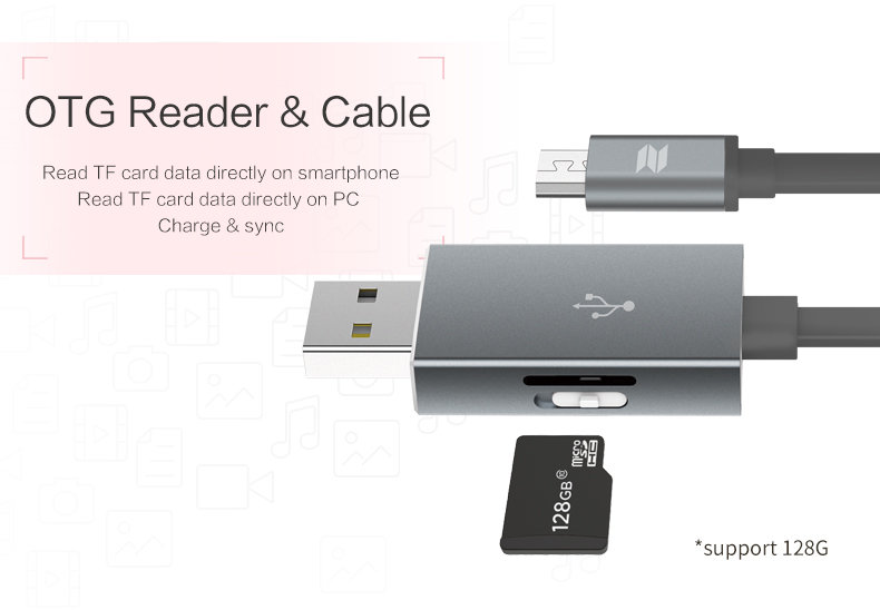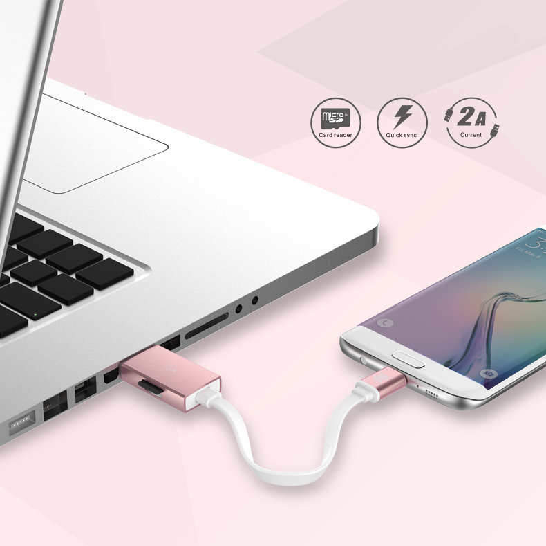 Кабель с карт-ридером Rock Space Micro USB OTG Розовое золото