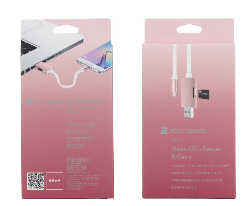 Кабель с карт-ридером Rock Space Type-C OTG Розовое золото