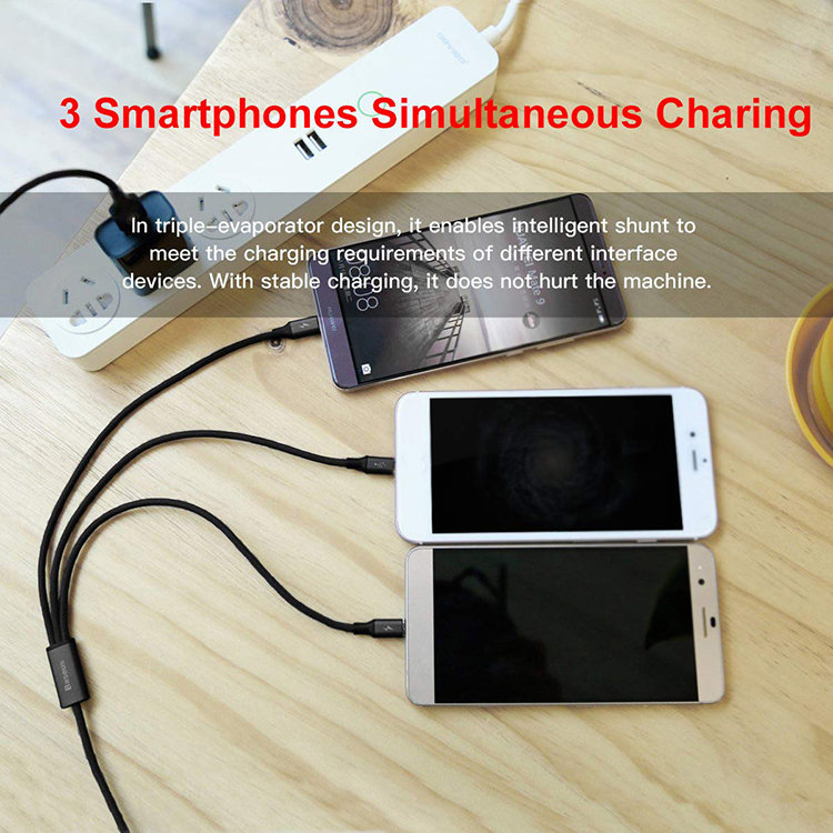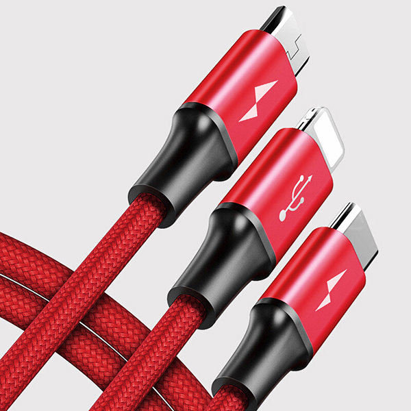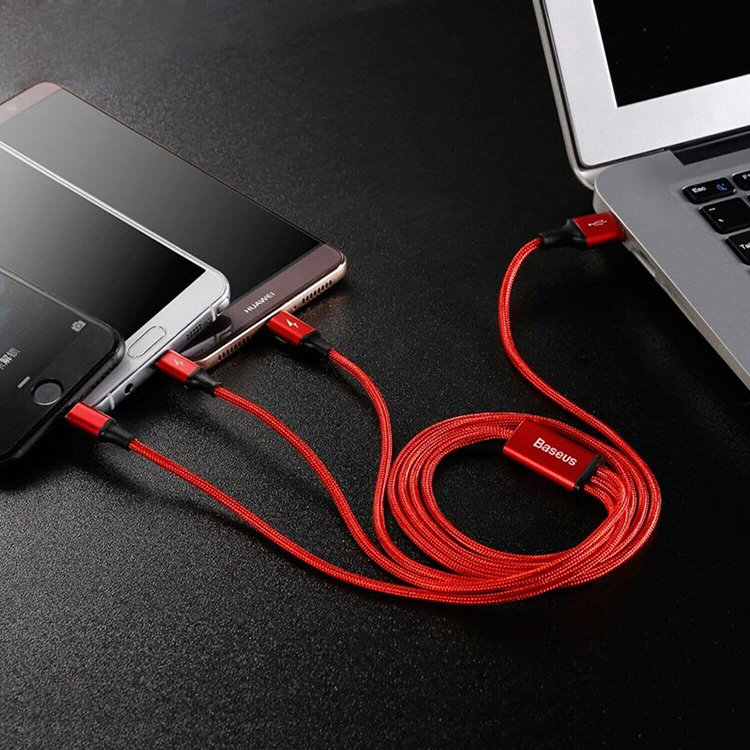 Кабель тройной Baseus Halo 3-in-1 Micro USB+Lightning+Type-C 3.5A 1.2м Красный