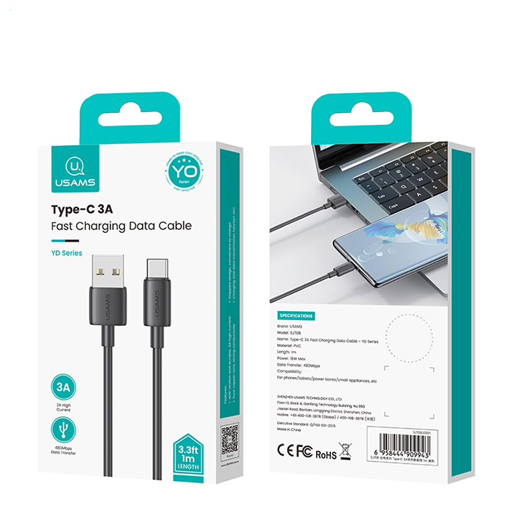 Кабель USAMS SJ708 YD Type-C - USB 3A 1м Белый