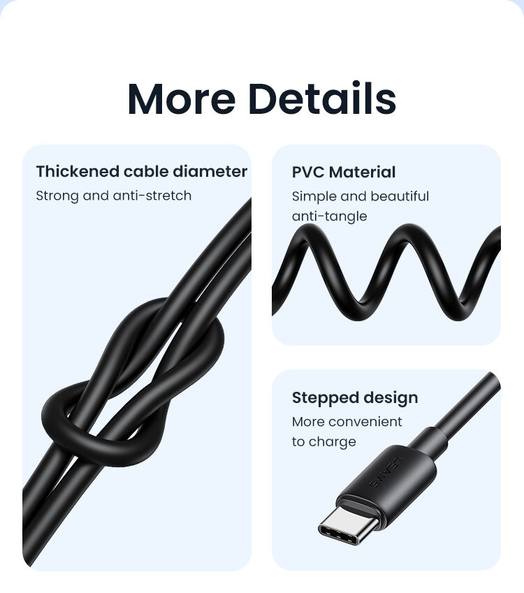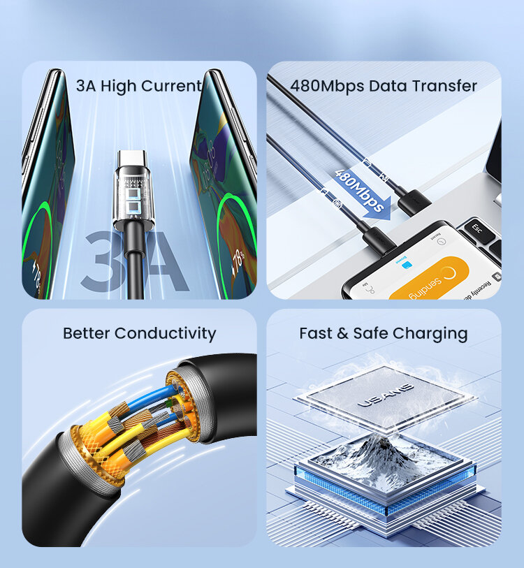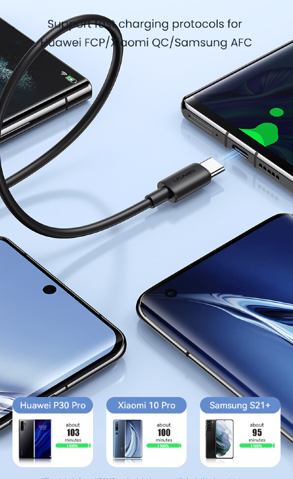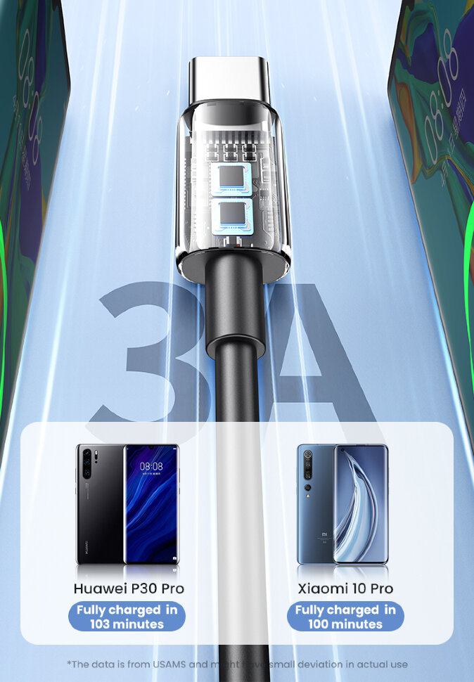 Мощность до 18WКабель серии YD обеспечивает быструю и надежную зарядку для устройств с портом Type-C, благодаря поддержке быстрой зарядке до 18W при 3А, а скорость передачи данных достигает 480 Мб/с |