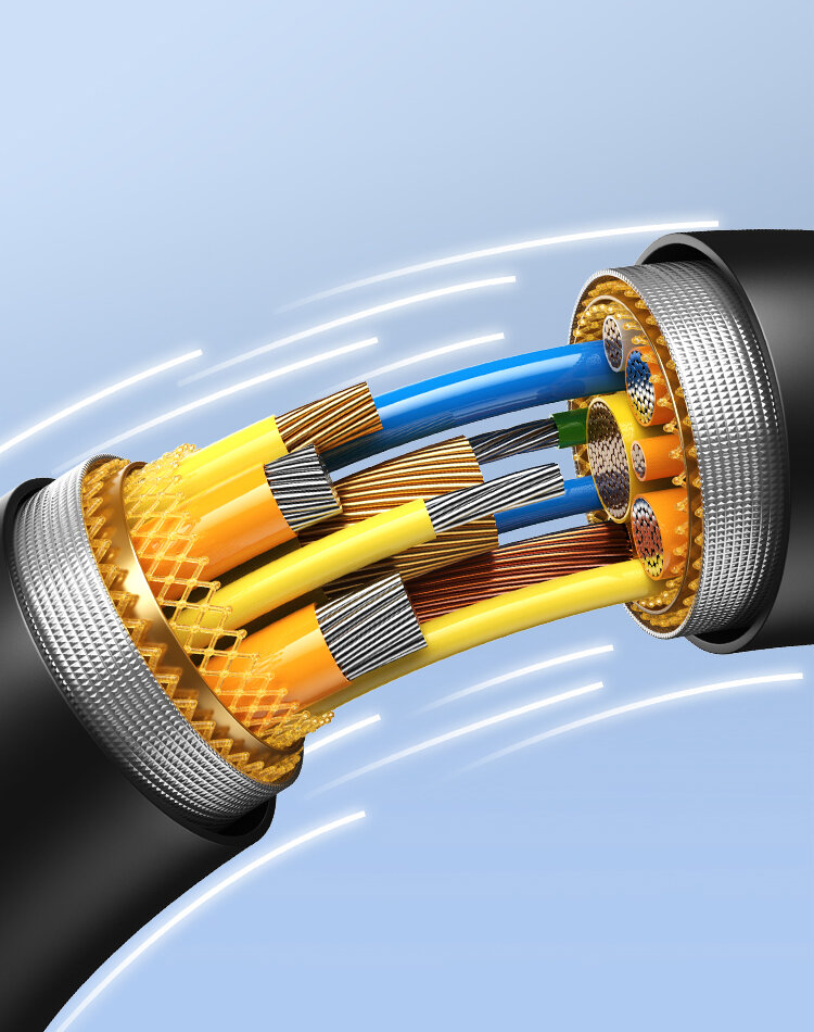 Крепкая конструкцияПокрытие из поливинилхлорида имеет прочную структуру и выдерживает более 5000 сгибаний не утолщая сам провод. Ступенчатая конструкция коннектора позволяет использовать кабель даже с противоударными чехлами |