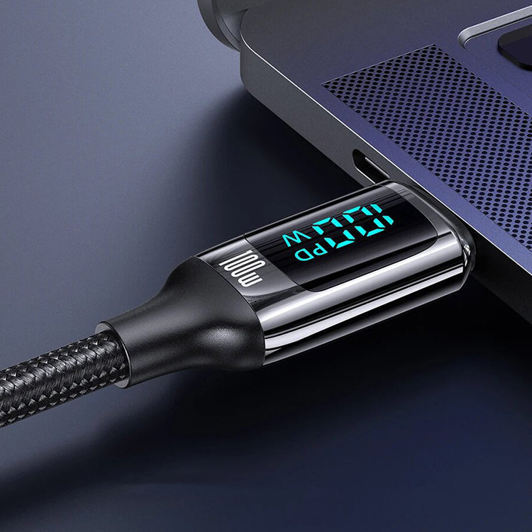 Быстрая зарядкаМощность кабеля равна 100 Вт, что является отличным показателем для быстрой и эффективной зарядки устройств. Этот параметр отображается на встроенном в штекер цифровом дисплее, что позволяет легко контролировать процесс зарядки |