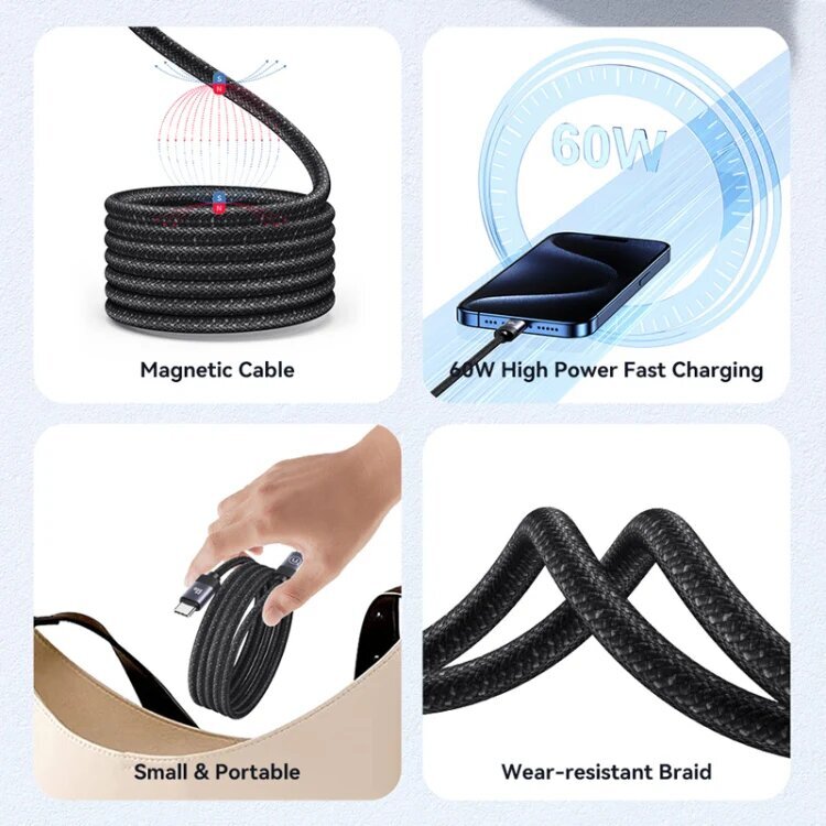 Магнитное покрытиеГлавной особенностью серии Rui стала специальная магнитная структура кабеля. Именно благодаря ей вы сможете не только быстро скрутить провод, но и "прилепить" его на металлическую поверхность чтобы не потерять! |