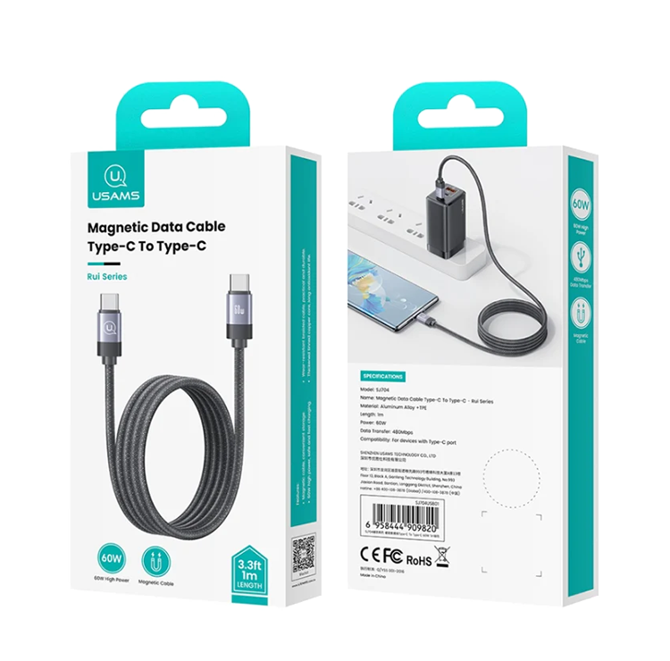 Кабель USAMS US-SJ704 Rui Magnetic 60W Type-C 1м Серый